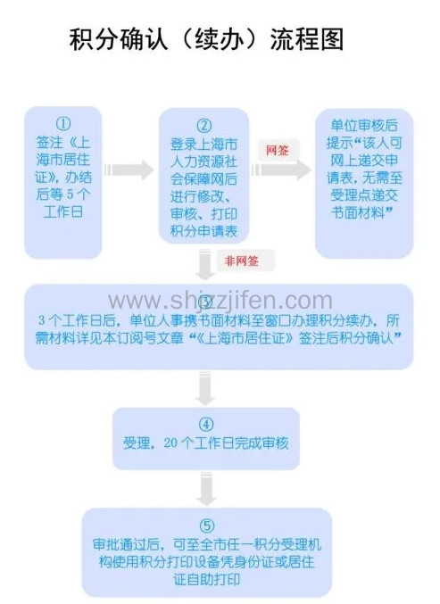 续签上海居住证积分前需确认上海居住证已经续签。在续签完居住证后3-7个工作日,在上海市人力资源与社会保障局官网申请居住证积分续办→个人申请提交→单位审核通过。