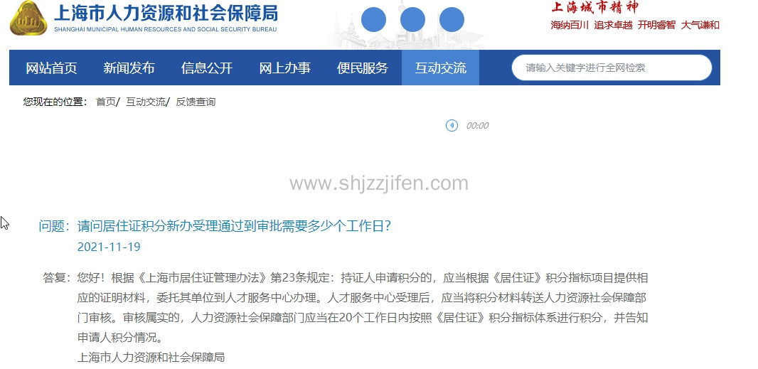 根据《上海市居住证管理办法》第23条规定:持证人申请积分的,应当根据《居住证》积分指标项目提供相应的证明材料,委托其单位到人才服务中心办理。人才服务中心受理后,应当将积分材料转送人力资源社会保障部门审核。审核属实的,人力资源社会保障部门应当在20个工作日内按照《居住证》积分指标体系进行积分,并告知申请人积分情况。