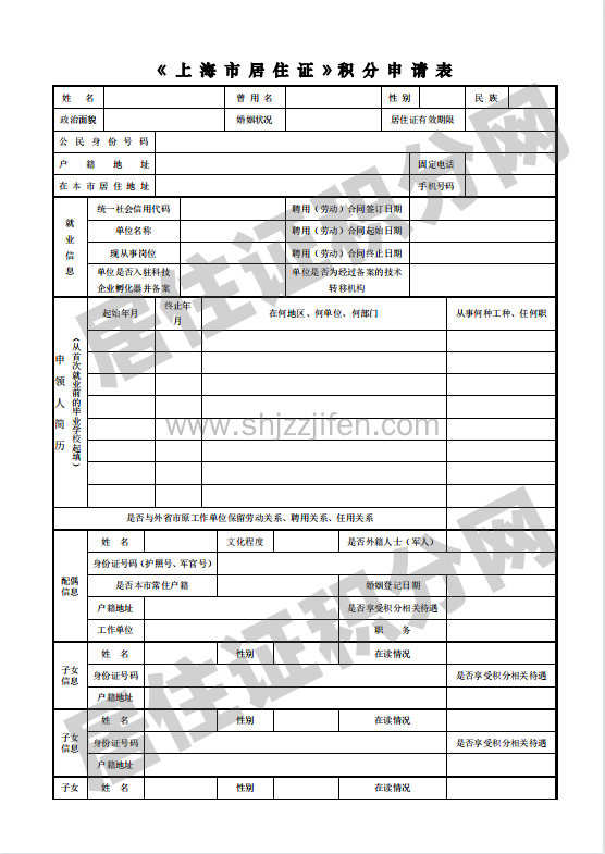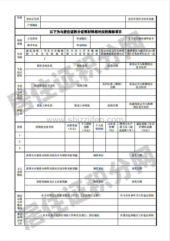 上海市居住证积分申请表下载