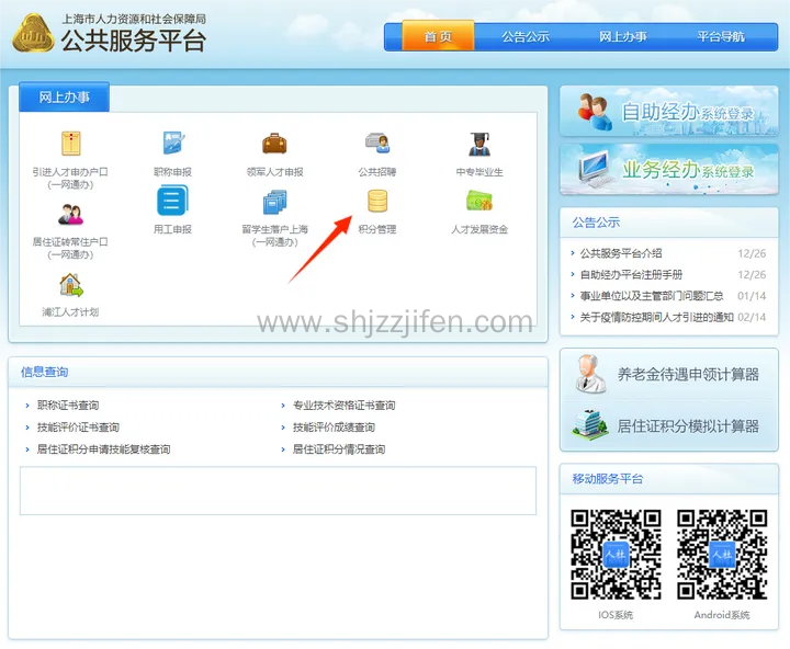 1、上海积分达标查询入口:积分模拟查询(点击自测)