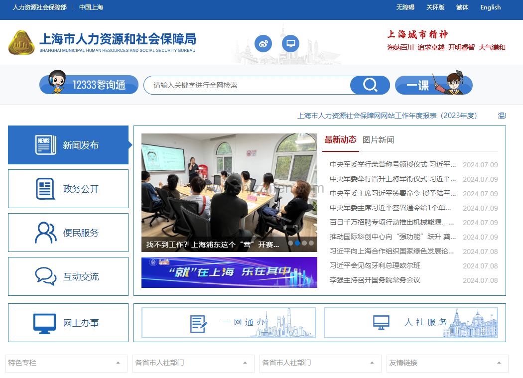 1.登录上海市人力资源和社会保障局网站(http://rsj.sh.gov.cn)