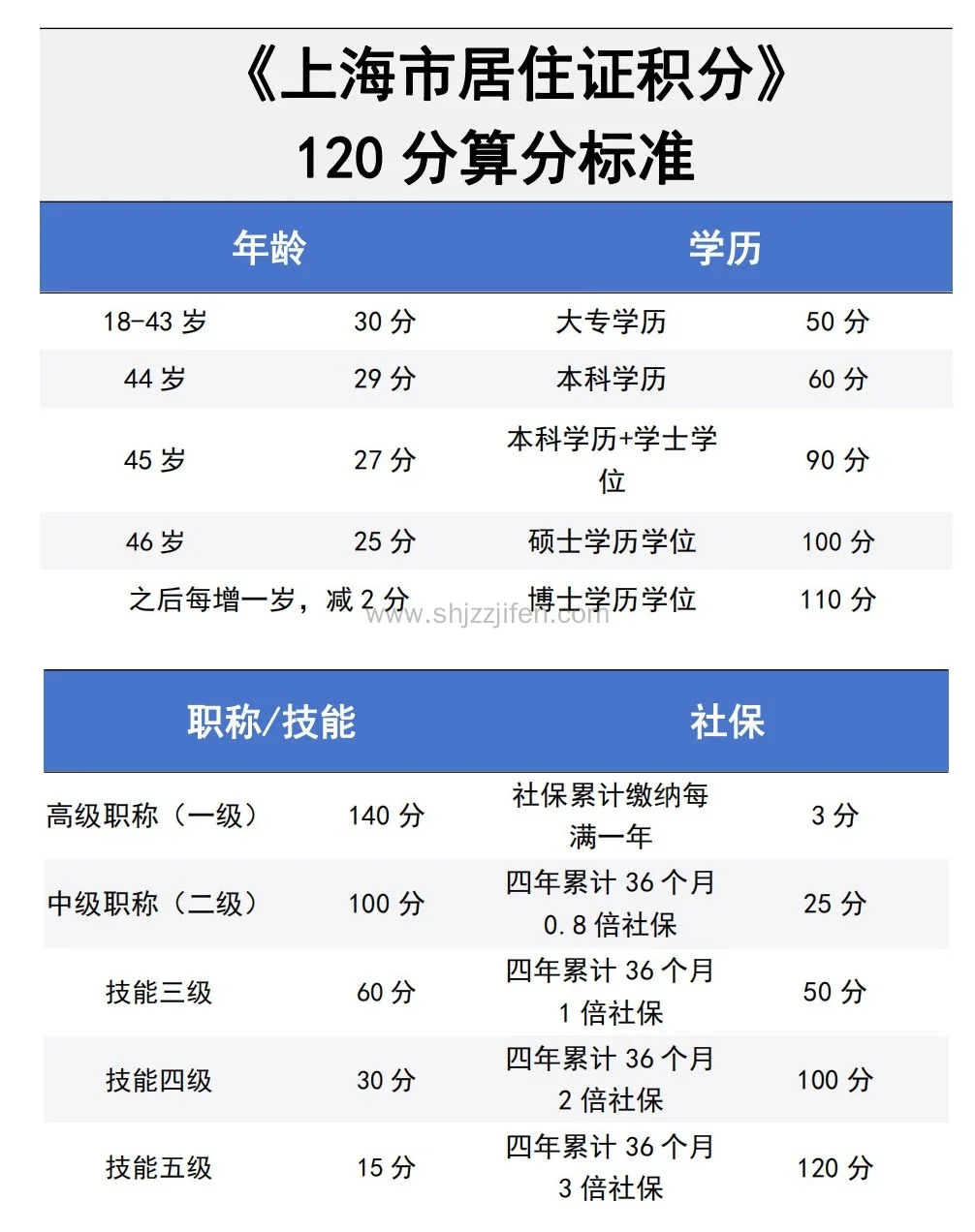 专科50 + 0.8至1倍25 +年龄30 + 社保年限(5年或以上)15=120分