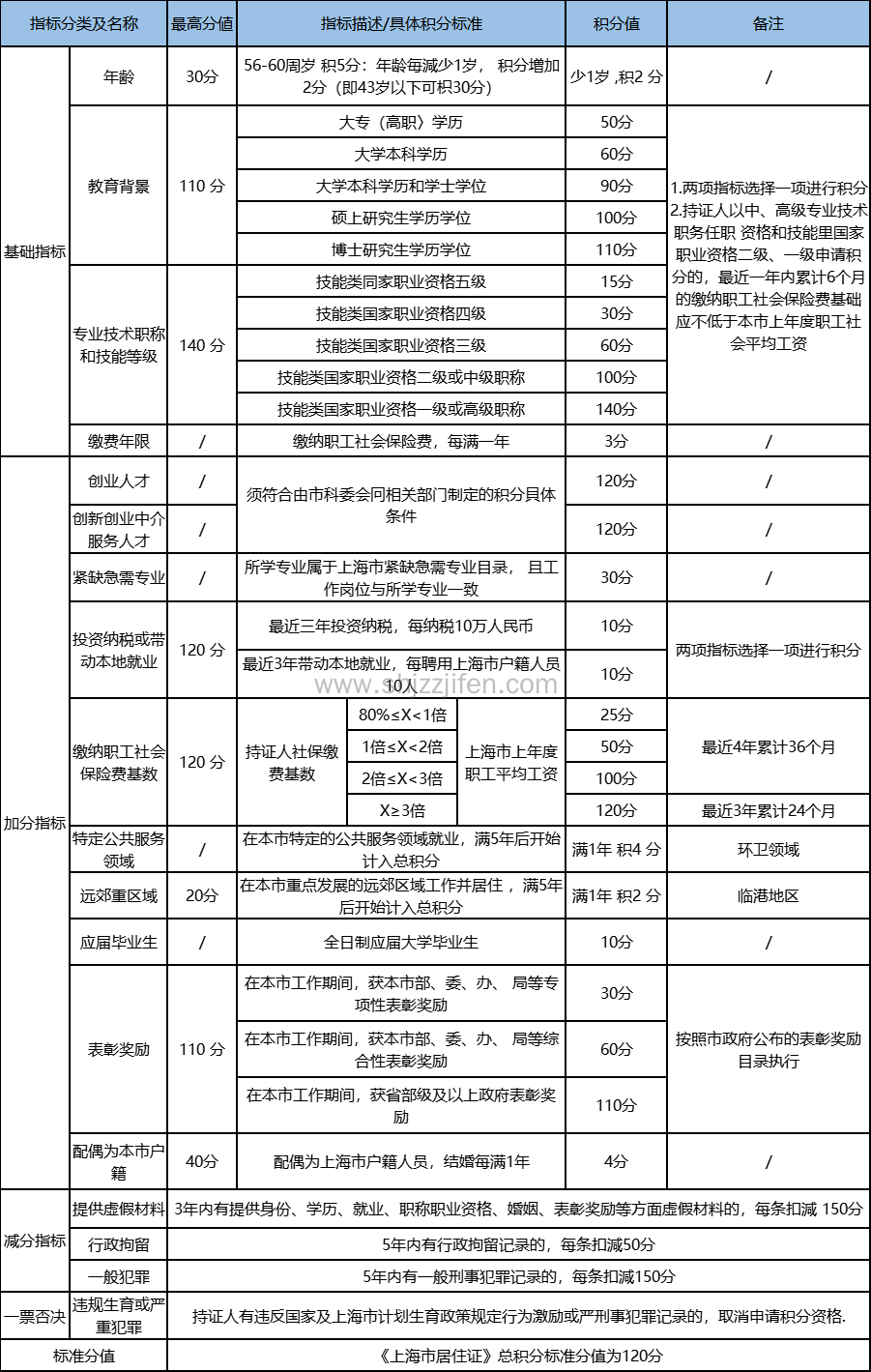 上海居住证积分指标体系由四个指标组成:基础指标、加分指标、减分指标、一票否决指标