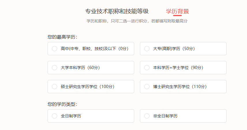 (1)教育背景:申请人可任意选择一种学历层次进行测算。