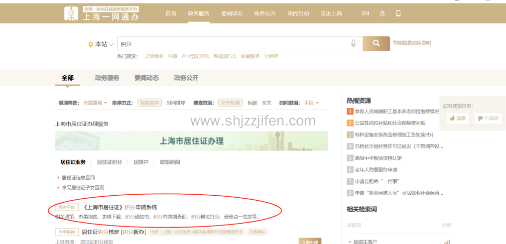 1、访问“上海市一网通办在线政务服务平台官网”网址:(https://zwdt.sh.gov.cn/govPortals/index.do)在导航栏输入“积分”并搜索
