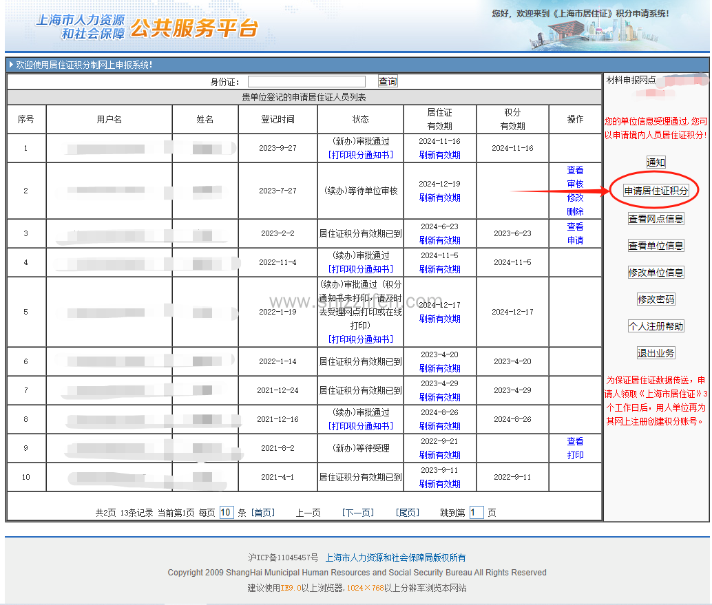 提示:为保证居住证数据传送,申请人领取《上海市居住证》3个工作日后,用人单位再为其网上注册创建积分账号。
