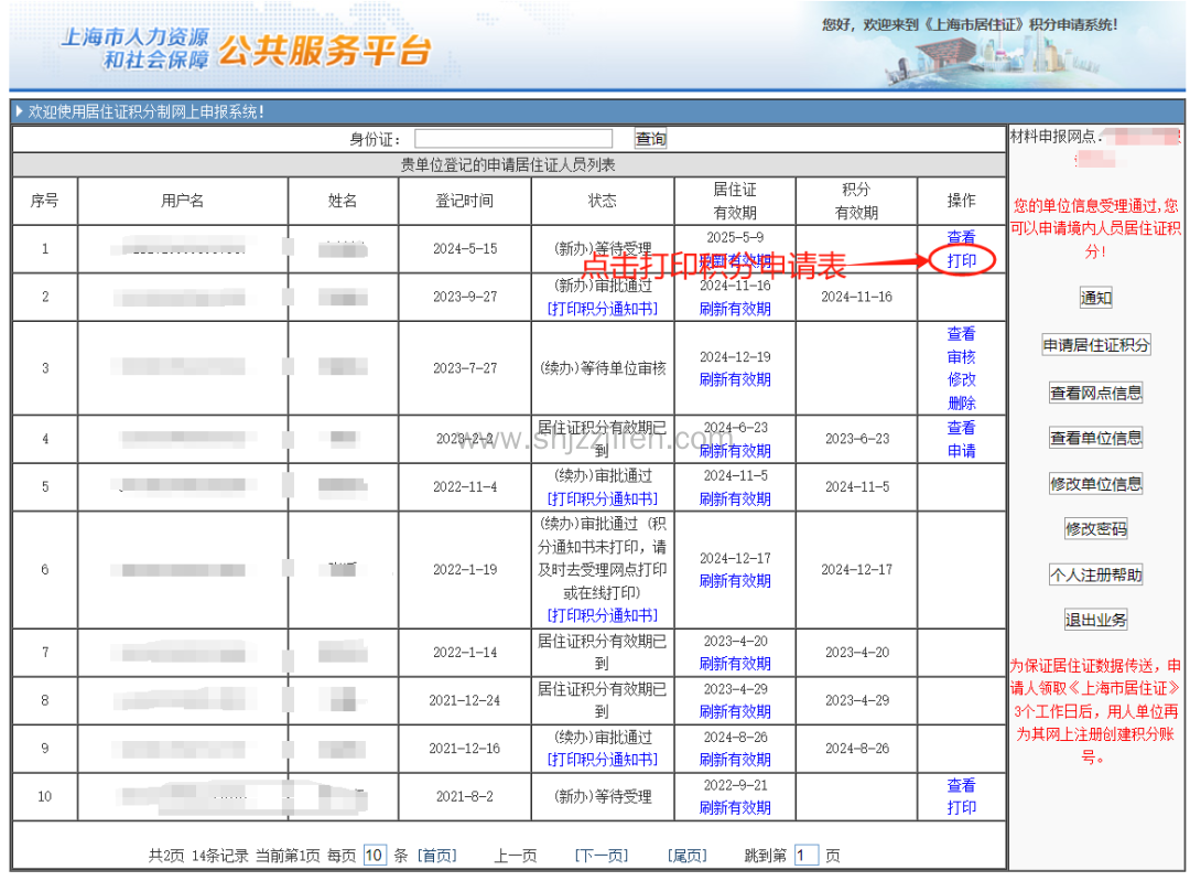 🔸用人单位可登录居住证积分账户,在网上打印《<上海市居住证>积分通知书》;申请人也可至全市任一受理机构,使用积分打印设备自助打印。