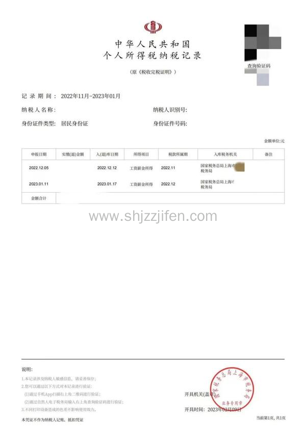 PS:横版税单所显示的信息与双语税单大致相同,但横版税单仅反映在上海的纳税情况,并且可以查询到2019年以前的纳税记录。