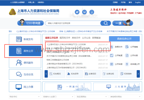登录上海市人力资源和社会保障局官网:http://rsj.sh.gov.cn/