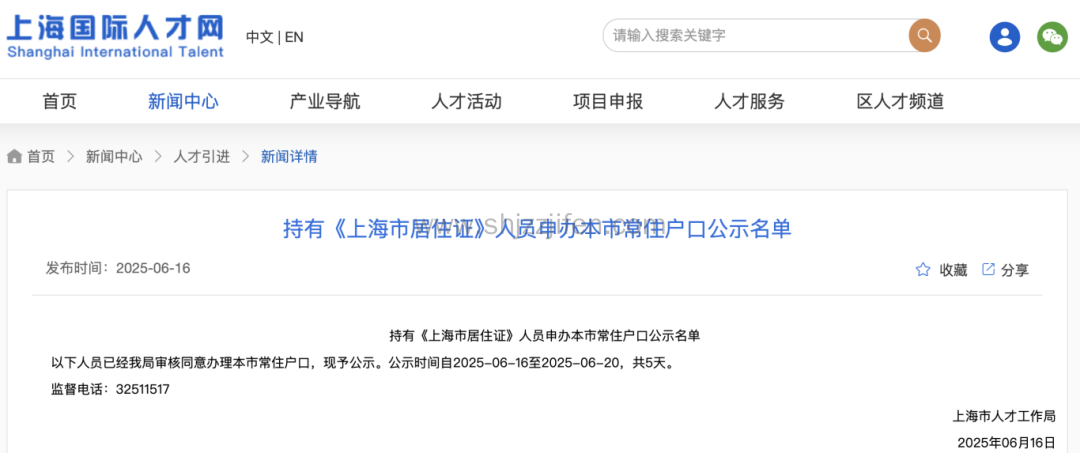 落户名单每半个月公布一次,由于原户名单较长,大家可以进入上海国际人才网查看