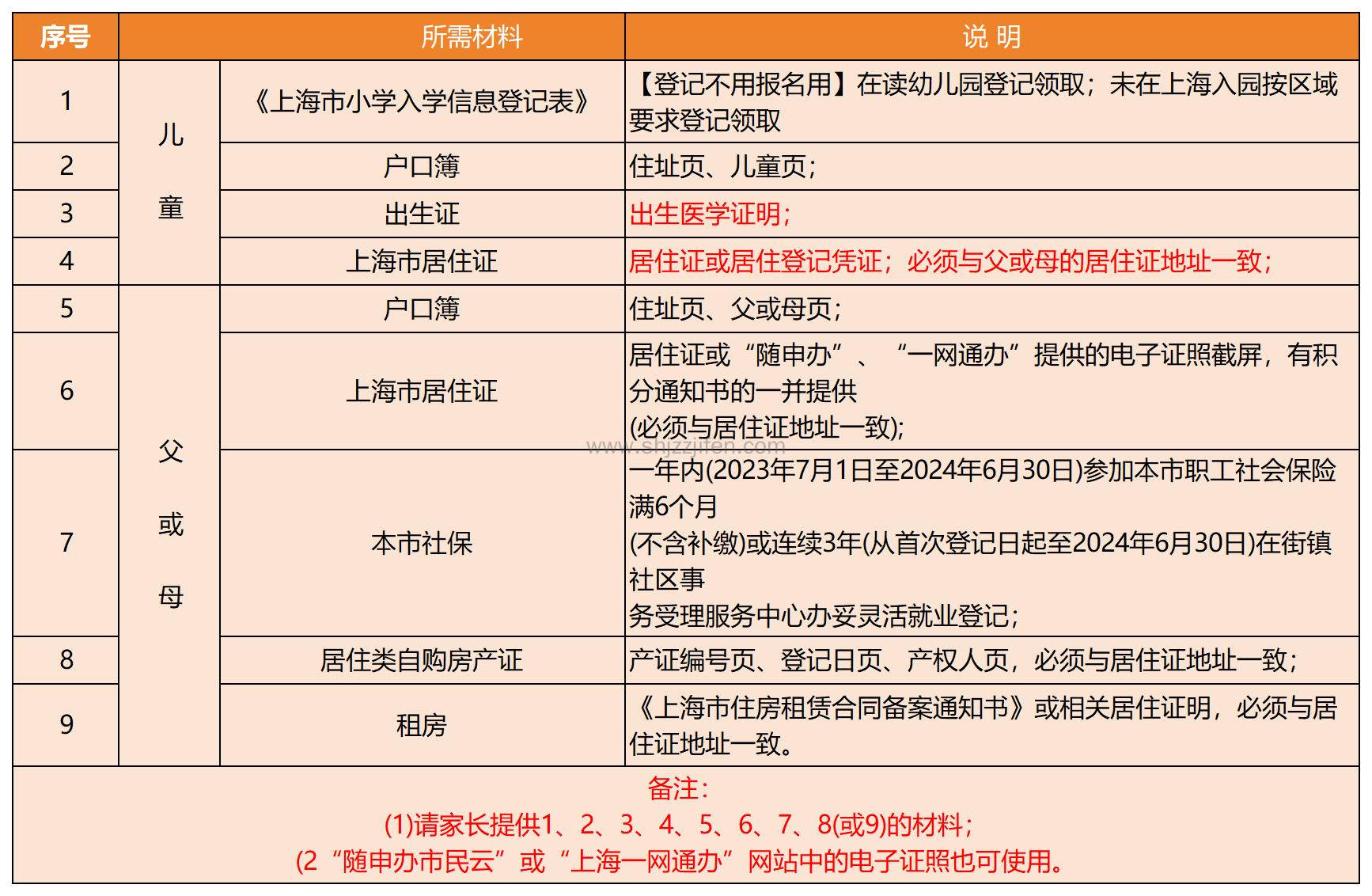 2024年11月-第二年2月非沪籍子女入学做好以下材料准备: